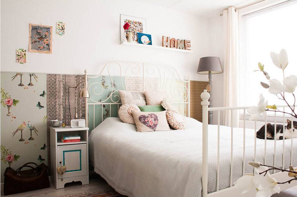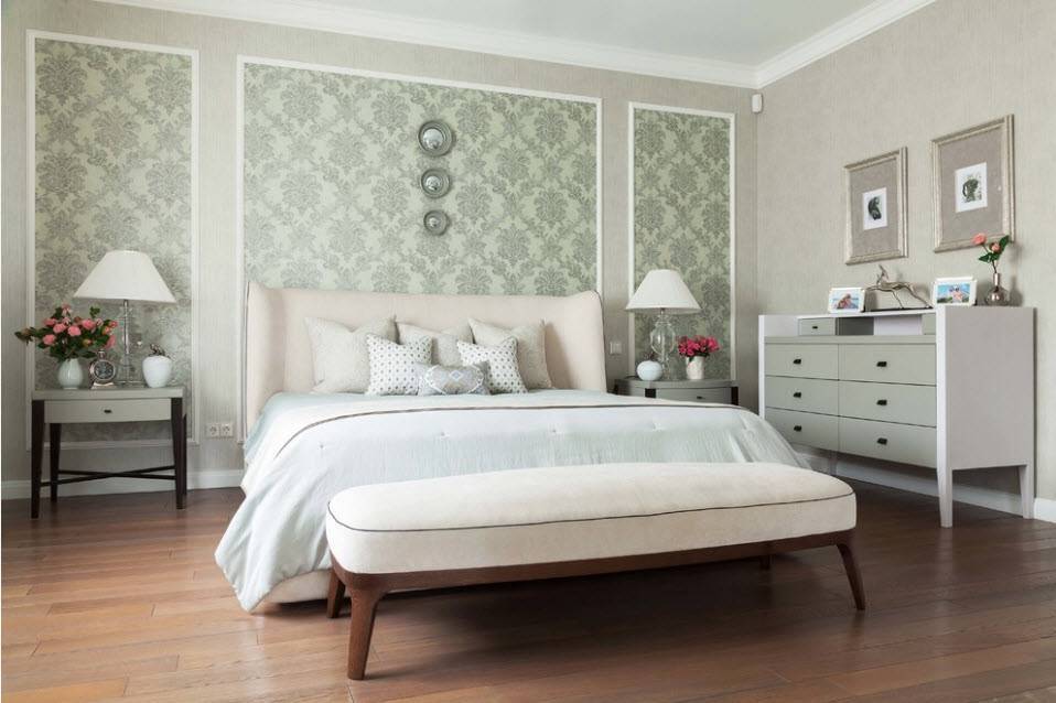 Комбинированные обои для спальни предполагают несколько способов оклеивания: