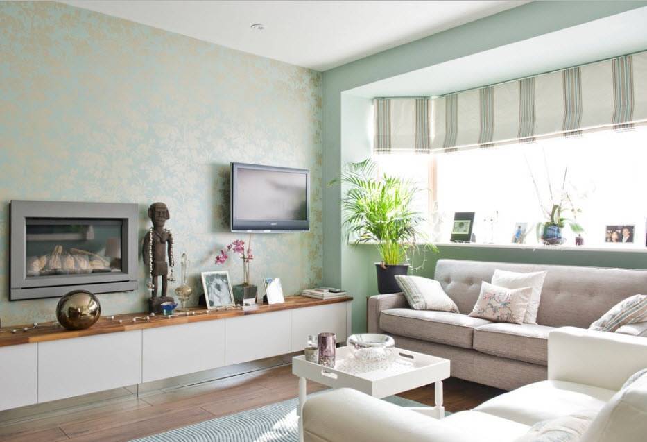 Обои пастельного цвета создадут умиротворяющую обстановку в гостиной, расположат к спокойному отдыху и дружеской беседе.