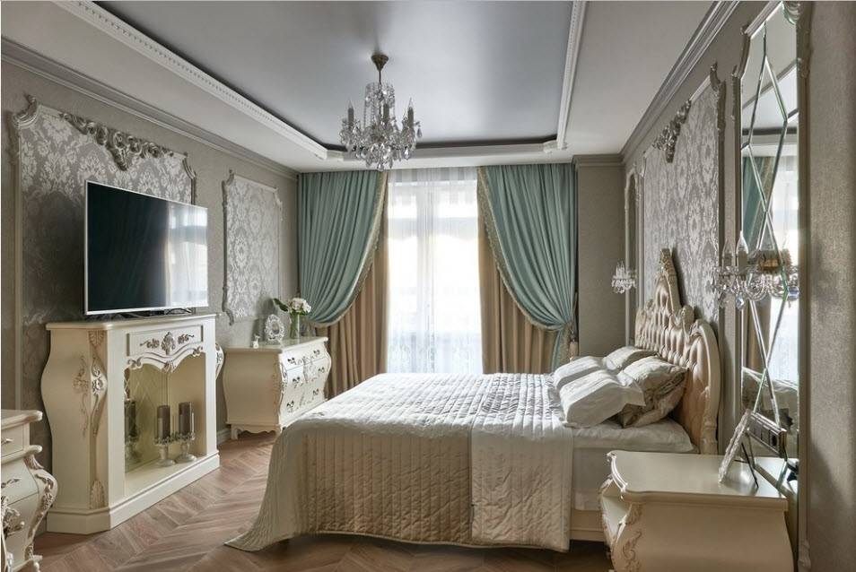Для отделения зоны спальни часто применяют ткань. Шторы способны создать интимность и будут служить надежной защитой от чужих взглядов. При помощи портьер можно отделить от гостиной части не только кровать, но также прикроватную тумбочку, комод, шкаф.