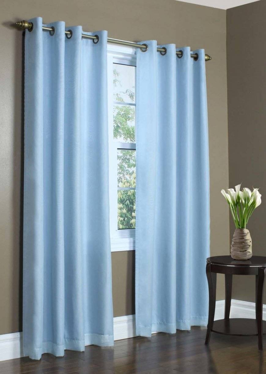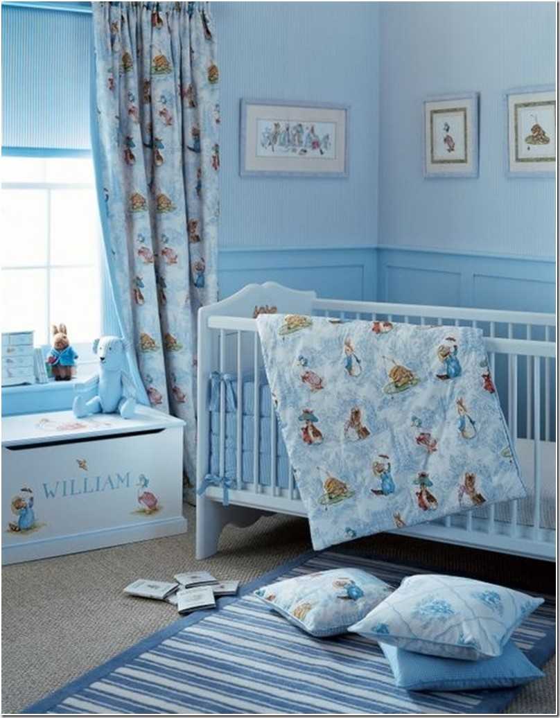 - При оформлении стен в голубой цвет, выбирайте занавески более светлых или темных тонов.