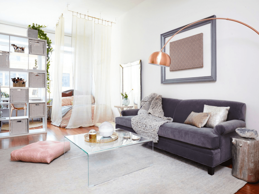 Обратимые, применение которых менее затратно. Для реализации задумок дизайна используются ширмы, шторы, разделение при помощи перестановки мебели.