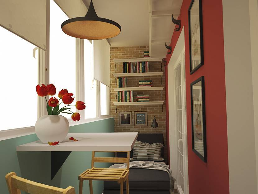 Балкон или лоджия преобразуется в библиотеку по тому же принципу: подвешиваются книжные полки или устанавливается шкаф, приносится кресло