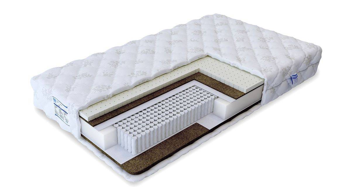- Matramax Хоффманн К2Л2 — долговечный швейцарский блок Waber из поджатых пружин (720 шт/м2) в шахматном порядке при любой нагрузке ощущается упругим, в наполнении — 1 см кокоса с 2 см латекса. Изготовлен по бесклеевой технологии. Комфортный сон по вполне доступной цене.