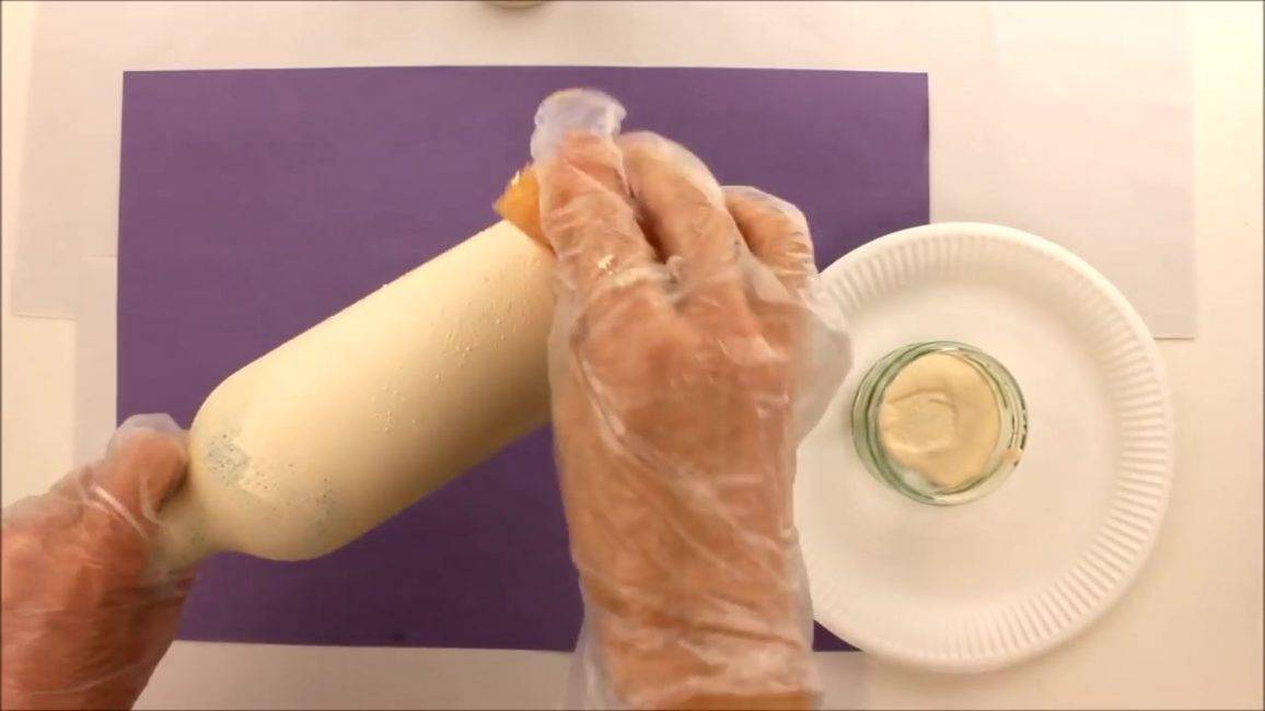 - Емкость вращается под различными углами, встряхивается, пока состав не покроет изнутри поверхность.