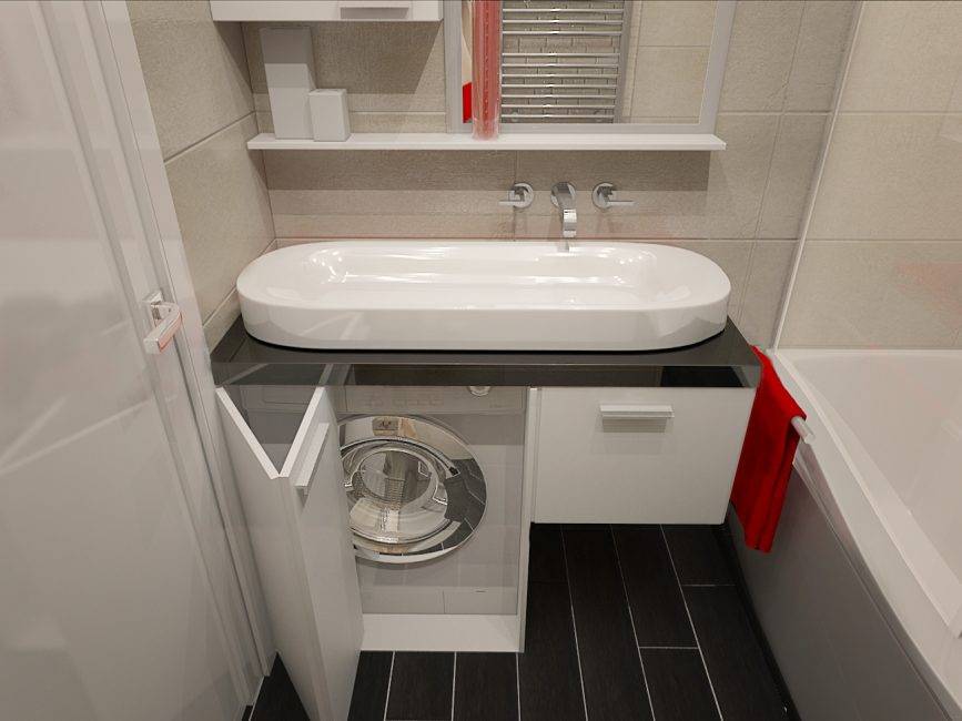 Для экономии места, стиральную машину можно разместить под раковиной или рядом с ней
