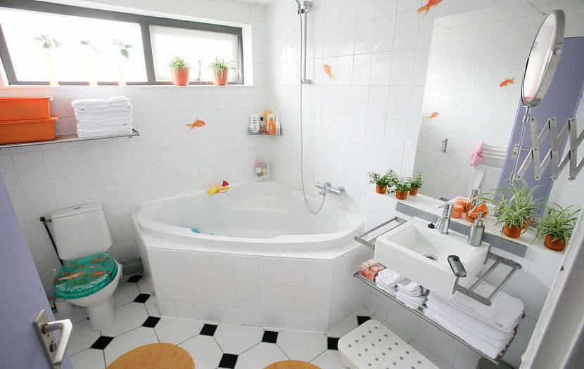 и поменьше всяких сложных стыков: в маленькой ванной они особо бросаются в глаза.