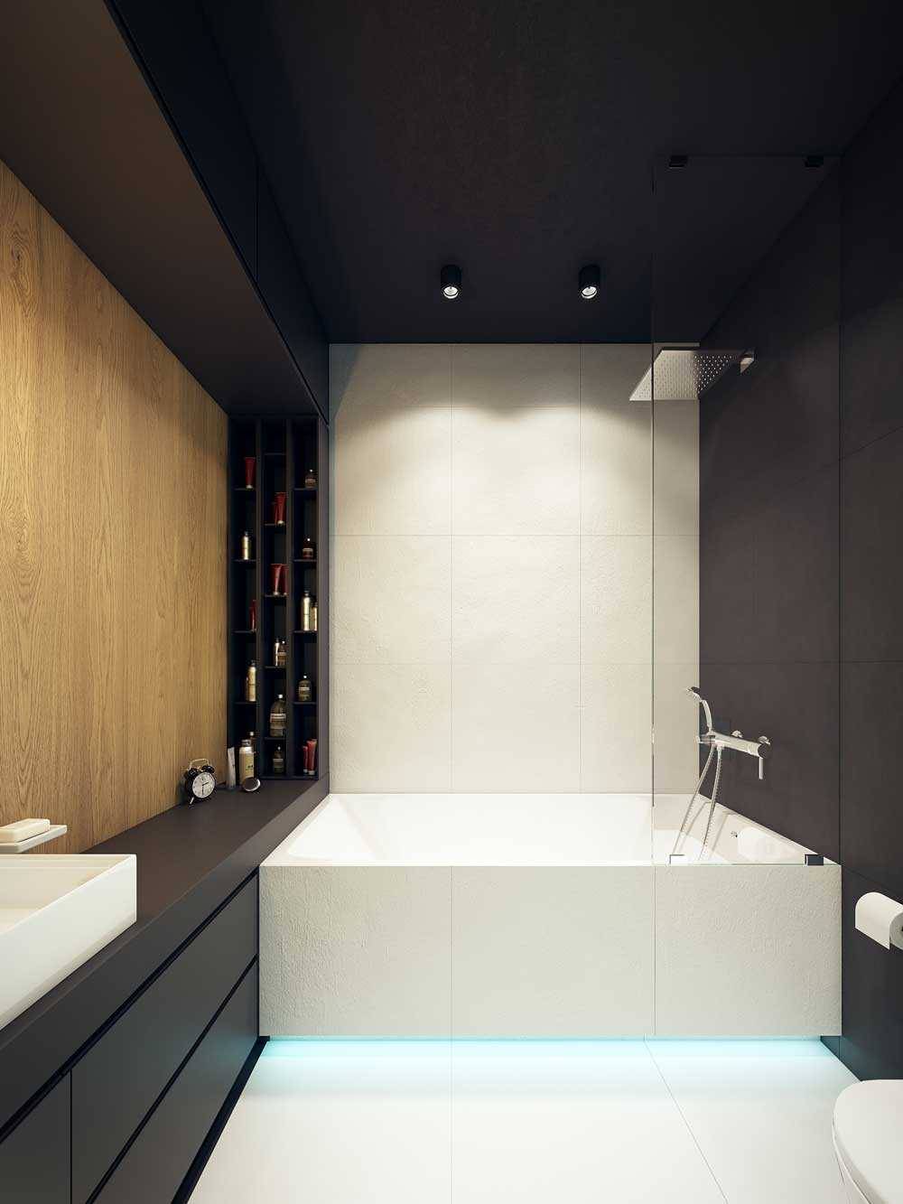 Дизайн ванной комнаты в современном стиле с рассеивающим мягким светом