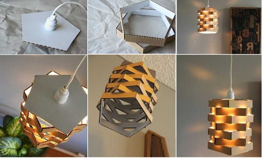 Если источник света работает с помощью светодиодной лампочки, то ему подойдет картонный абажур. Изготовление последнего происходит следующим образом:
