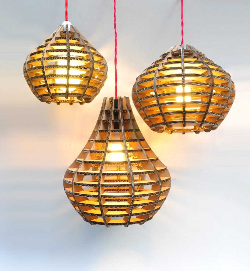 - Картон сворачивается в профильную трубку, охватывает несущую основу и устанавливается на лампу.