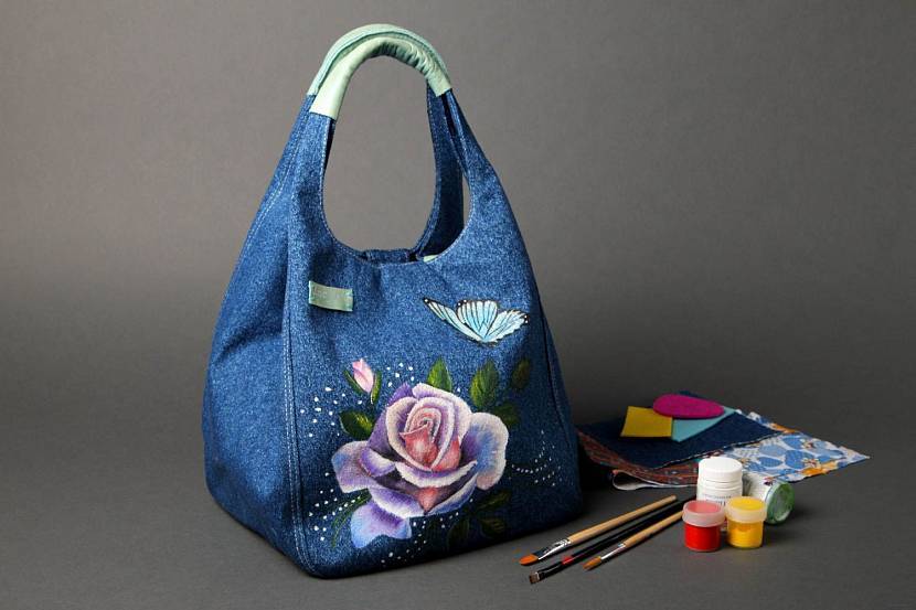 Красивые переходы тонов в рисунке из акриловых красок на джинсовой сумкеИсточник Pinterest