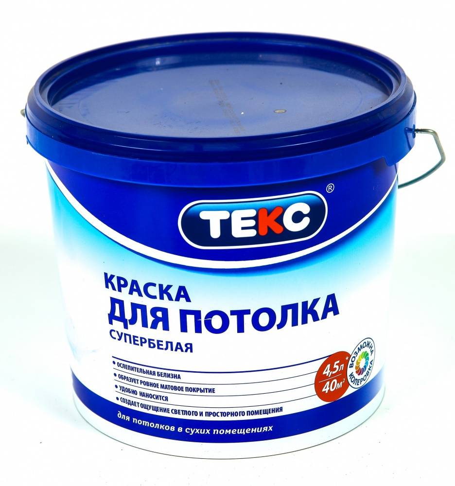 Для обработки потолка можно купить обычную акриловую краску белого или супербелого цвета. Как правило, на банке имеется пометка «для потолков» либо «для стен и потолков». При желании в такие краски вводятся цветные пастообразные колеры нужного оттенка, позволяющие придать необычный облик.