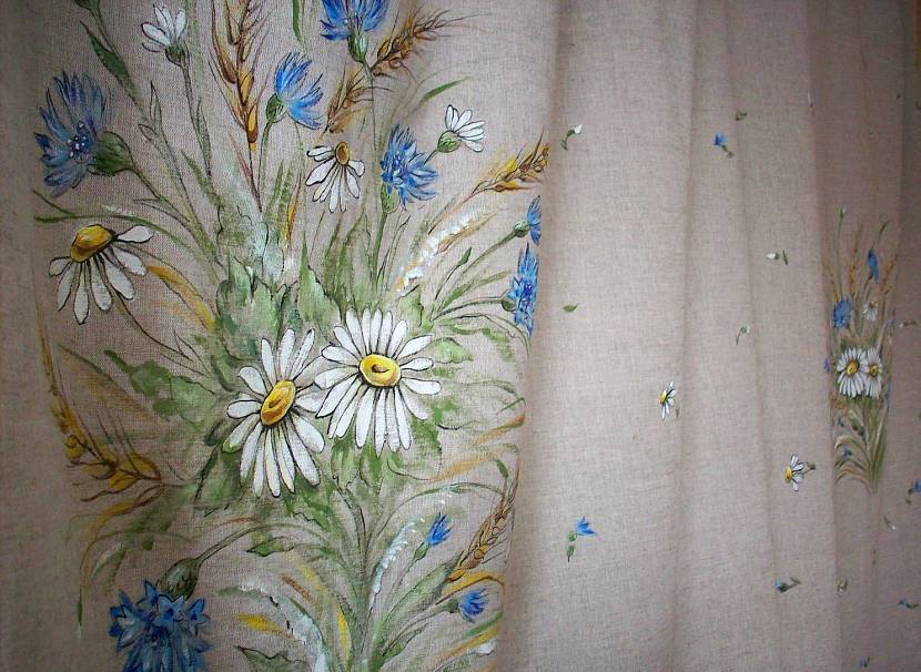 Льняные шторы, украшенные растительным рисунком, выполненным акриломИсточник handhobby.ru