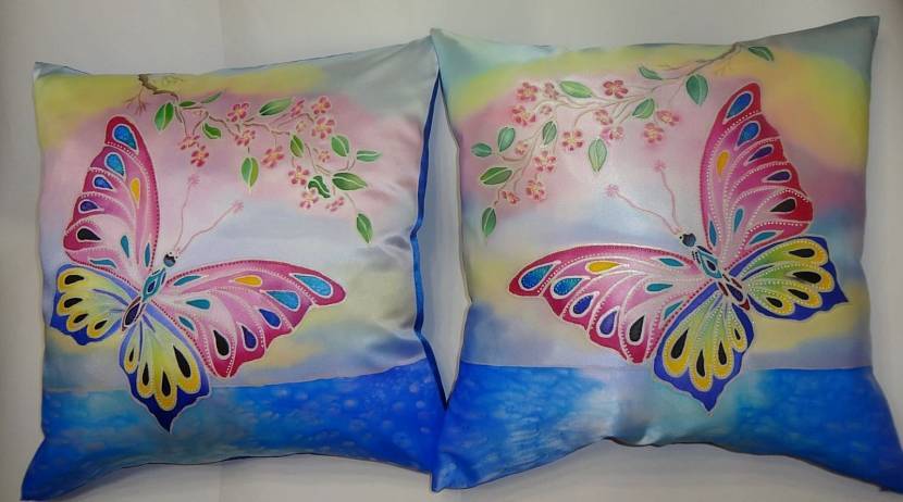 Перламутровые акриловые краски в росписи по ткани наволочек диванных подушекИсточник livemaster.ru