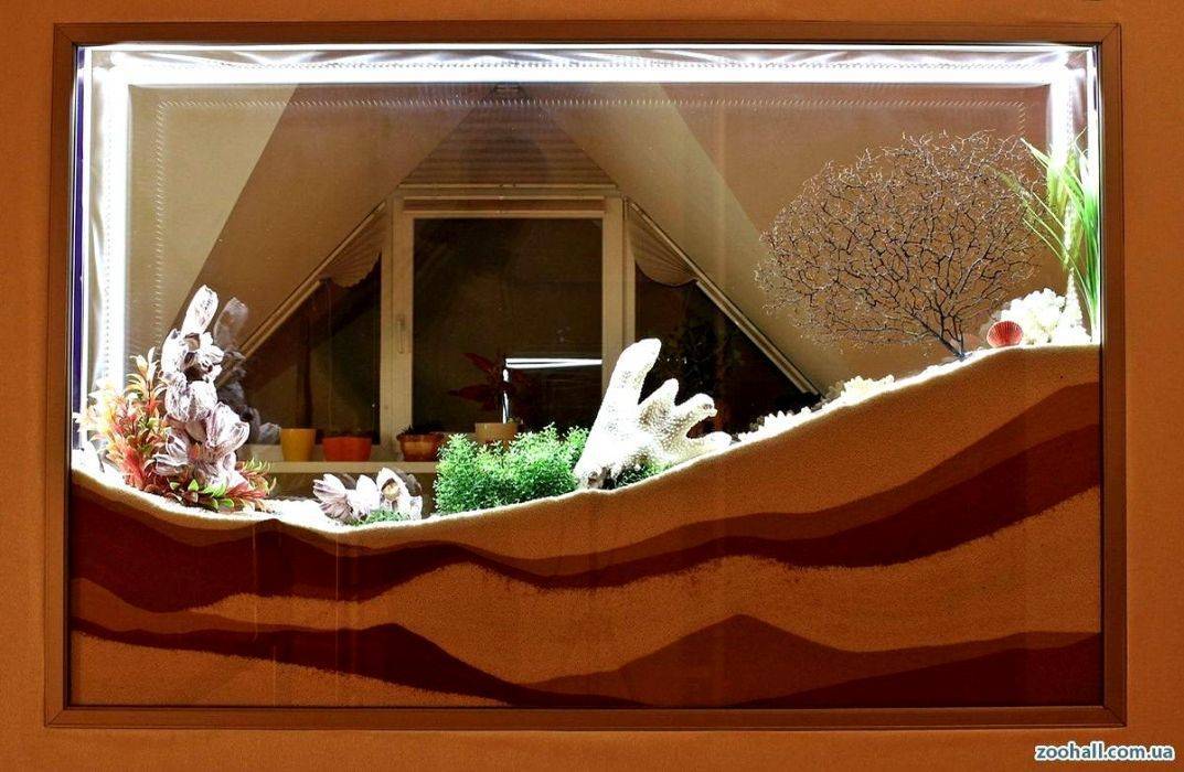 Главной частью декорации сухого аквариума являются несколько слоёв цветного песка