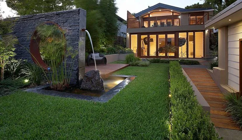 Оформление ландшафтного дизайна в стиле хай-тэк во двореИсточник rehouz.info