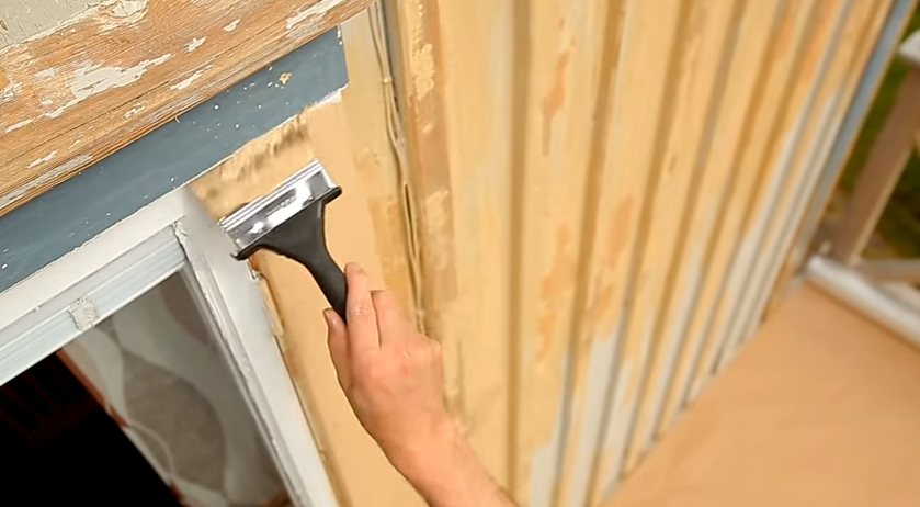 Шаг 2. Если основание уже было покрашено, старую краску необходимо соскрести щеткой либо обработать специальной жидкостью – смывкой. Ее наносят валиком на поверхность, оставляют на некоторое время, а затем снимают при помощи щетки с жесткой щетиной.