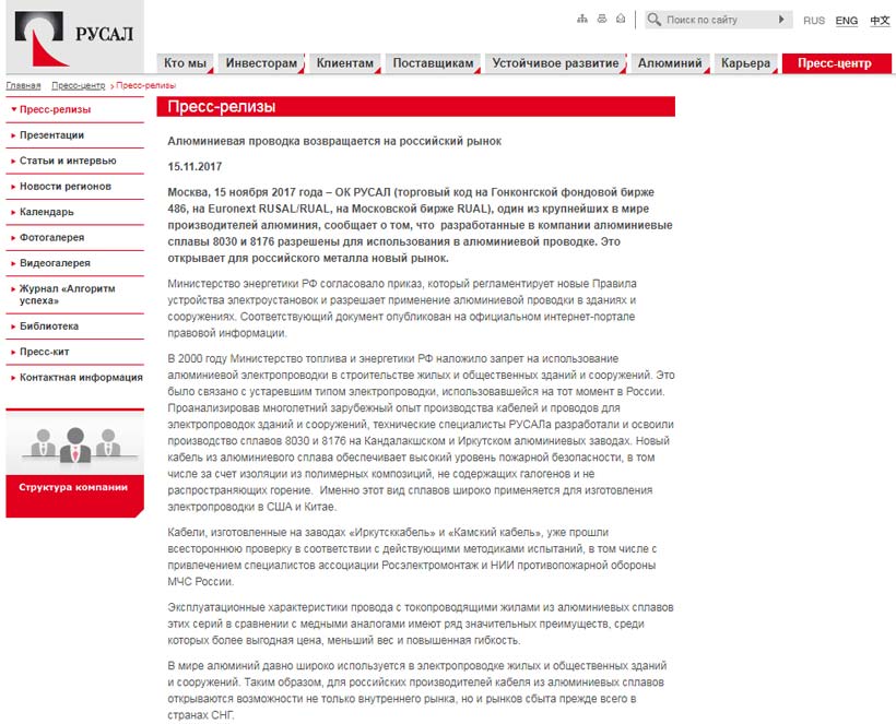 Однако там же говорится, что непосредственно самого алюминия в составе такой проводки должно быть более 99%.