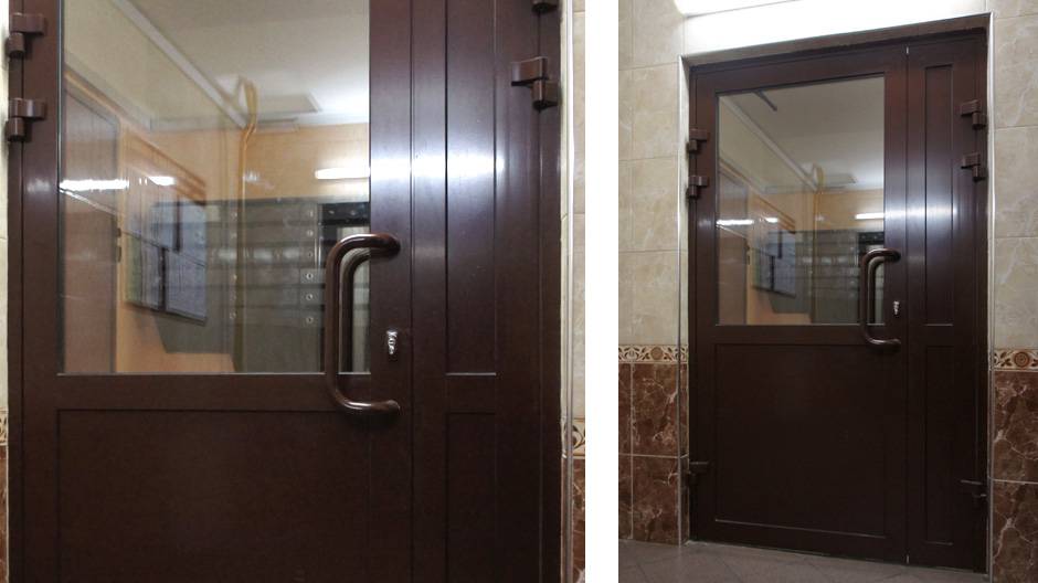 Такие входные двери отличаются по техническим характеристикам, типу конструкции и способу открывания створок. Так, выделяют одностворчатые, двухстворчатые, с одной подвижной створкой, автоматические на фотоэлементах, портальные модели. Вариант выбирают в зависимости от функционального назначения – офис, частный дом, предприятие.