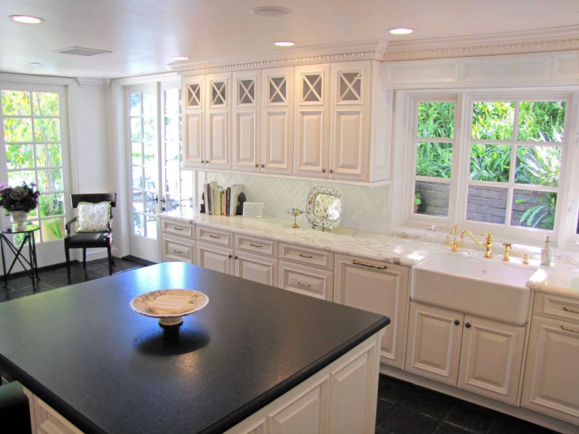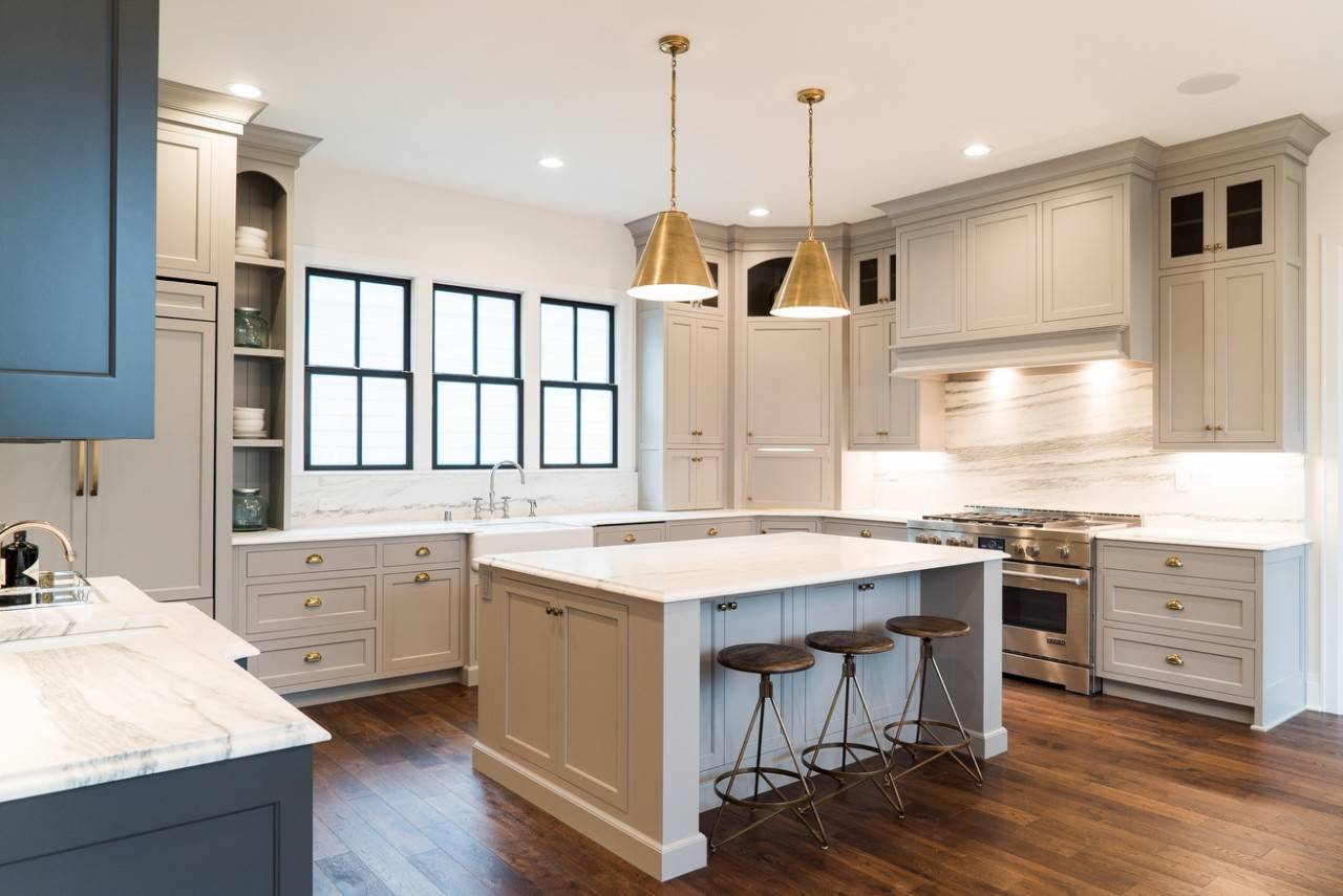 Цвета фасадов и окружающей отделки гармоничные, максимально близкие к натуральным, как правило, светлые. Это может быть белый, сливочный, оливковый, травяной, опаловый, бежевый, коричневый, серо-голубой. Кухня в спокойных, несколько «припыленных» оттенках выглядит очень элегантно, при этом не кричаще. Американцы предпочитают чаще всего простую по дизайну мебель светлых оттенков. В течение срока службы они не боятся ее перекрашивать, чтобы сменить интерьер, вместо покупки полностью нового гарнитура.