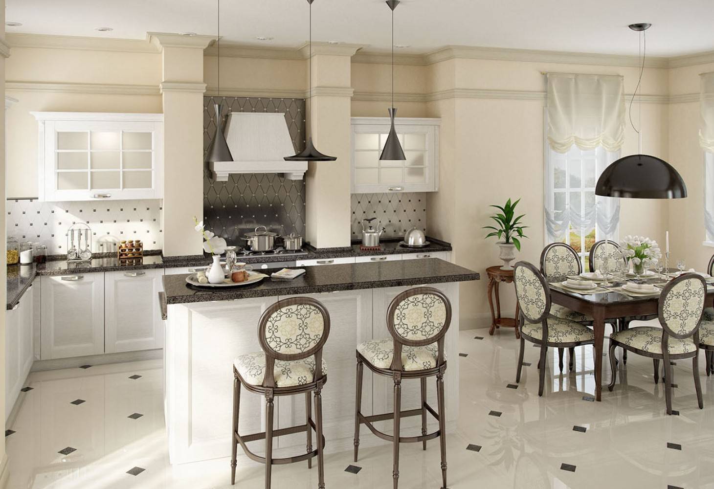 В первую очередь нужно учитывать, что данная кухня обычно соединяется с гостиной, а потому выглядит просторной и светлой. Это удачное решение и для квартир, и для частных домов. В целом названному стилю характерны следующие основные черты: