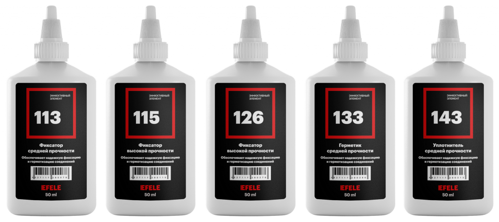 Под брендом EFELE реализуются высококачественные анаэробные составы. В линейке товаров доступны клеи-фиксаторы, клеи-герметики и жидкие уплотнители.
