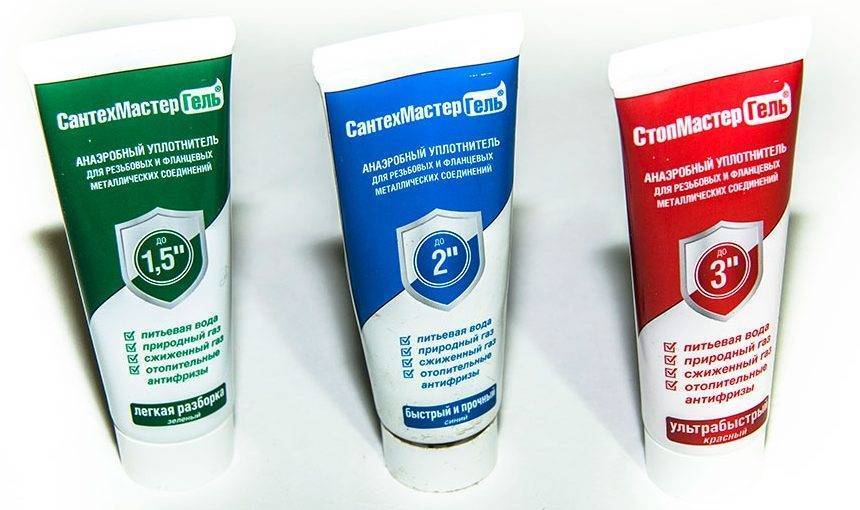 Продукция отечественной , известная под маркой «Сантехмастер гель», тоже пользуется большим спросом. Анаэробный герметик «Сантехмастер» выпускается в тюбиках объемом 15 мл, цена – от 150 руб. При полудюймовой резьбе такого объема хватит на обработку 30 фитингов. «Сантехмастергель» не боится агрессивных сред, может использоваться для герметизации систем с бензином, спиртом или антифризом. Хорошо переносит высокое давление и температуру.