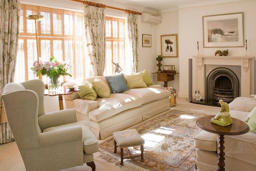 Цвет мебели в процессе создания интерьера в английском стиле также имеет значение. Это могут быть бежевые, легкие серые или светло-желтые варианты, а также пастельные модели. Если необходимо распределить цветовые акценты, то можно использовать подушки, скатерти и другие предметы декора.