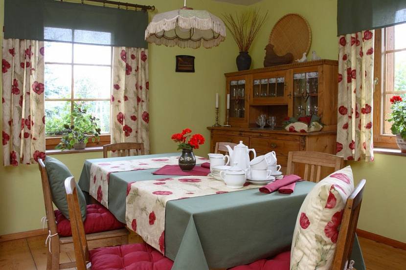 Приведём несколько примеров применения текстиля кантри в интерьере: