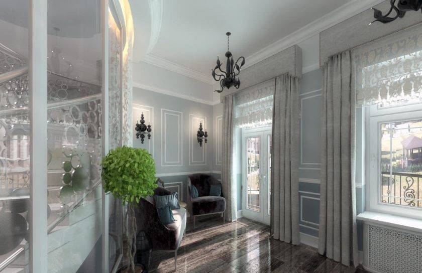 Важно соблюдать принципы симметрии. Для зонирования подойдут накладные полуколонны, лепнина.