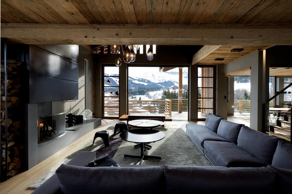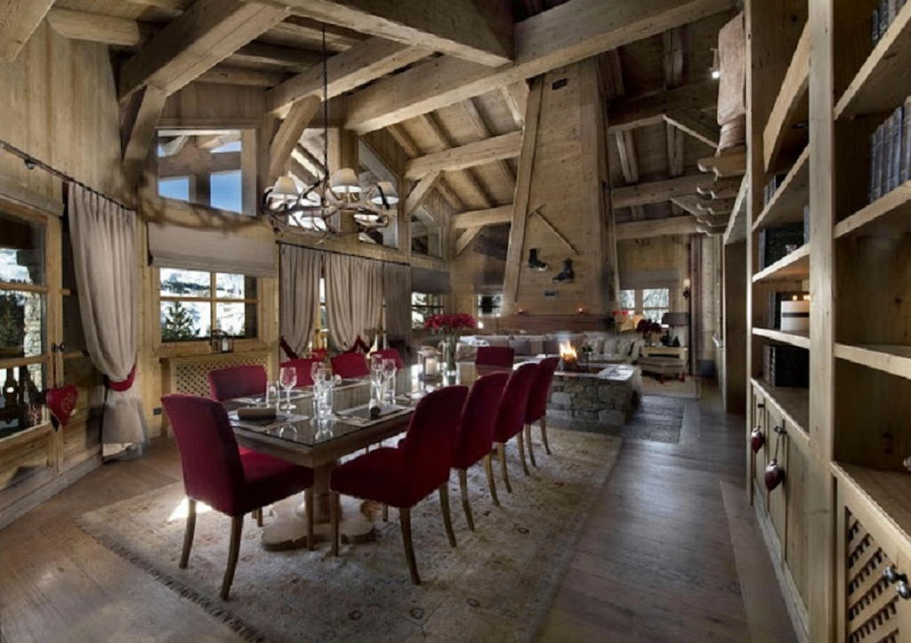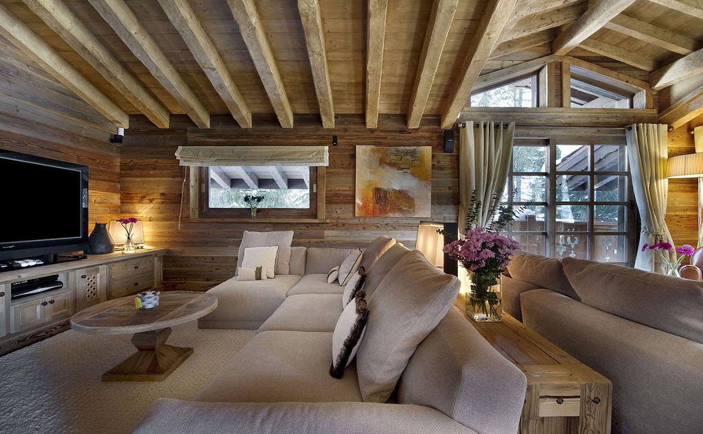 Еще одна характерная черта – массивные перекрытия и тяжелые внутренние балки из цельных бревен. Хотя обычные загородные коттеджи не подвергаются тем нагрузкам, что альпийские хижины, эта особенность придает им характерный шарм.