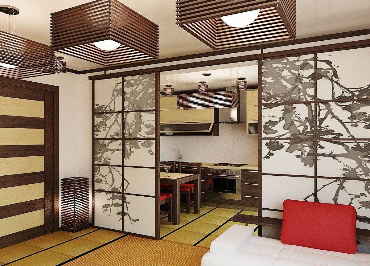 В каждом направлении применяются свои методы деления пространства на функциональные зоны. К примеру, в японском стиле используются высокие и при этом легкие ширмы, изготовленные из материалов, имитирующих рисовую бумагу.