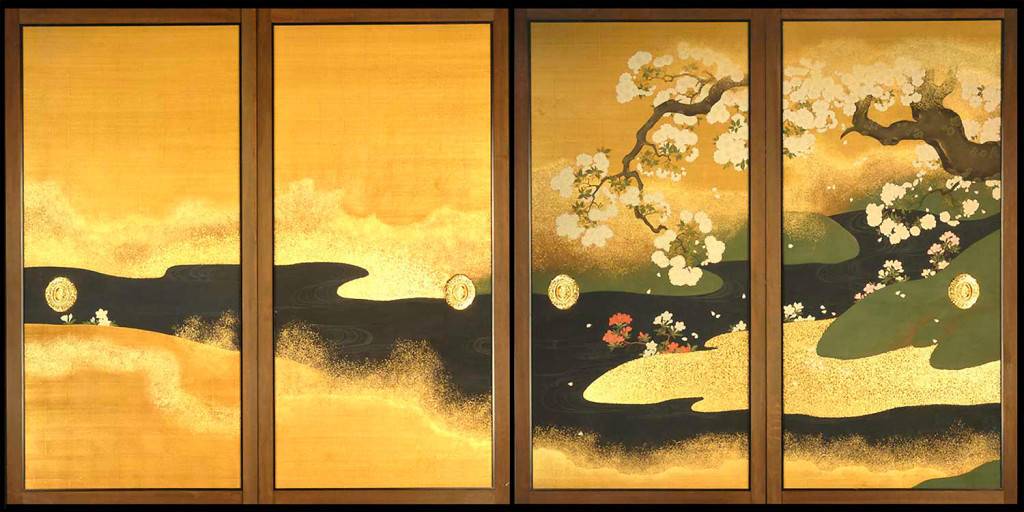 Характерно тканевое оформление и для ширм фусума. Такие перегородки могут быть украшены картинами цветущих садов сакуры или изображениями из жизни покорных гейшей и воинственных самураев. Перегородки разделяют пространство и идеальны для современных квартир-студий.