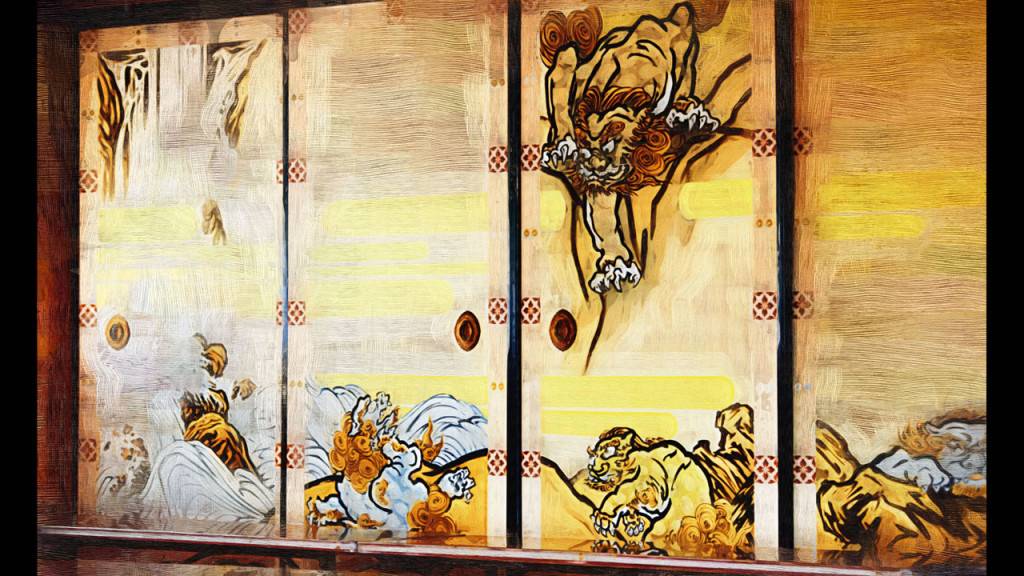 Особое место занимает передвижная ширма, с помощью которой можно отгородить зону в помещении. Внутри комнаты для этого используется декоративная перегородка — фусума.