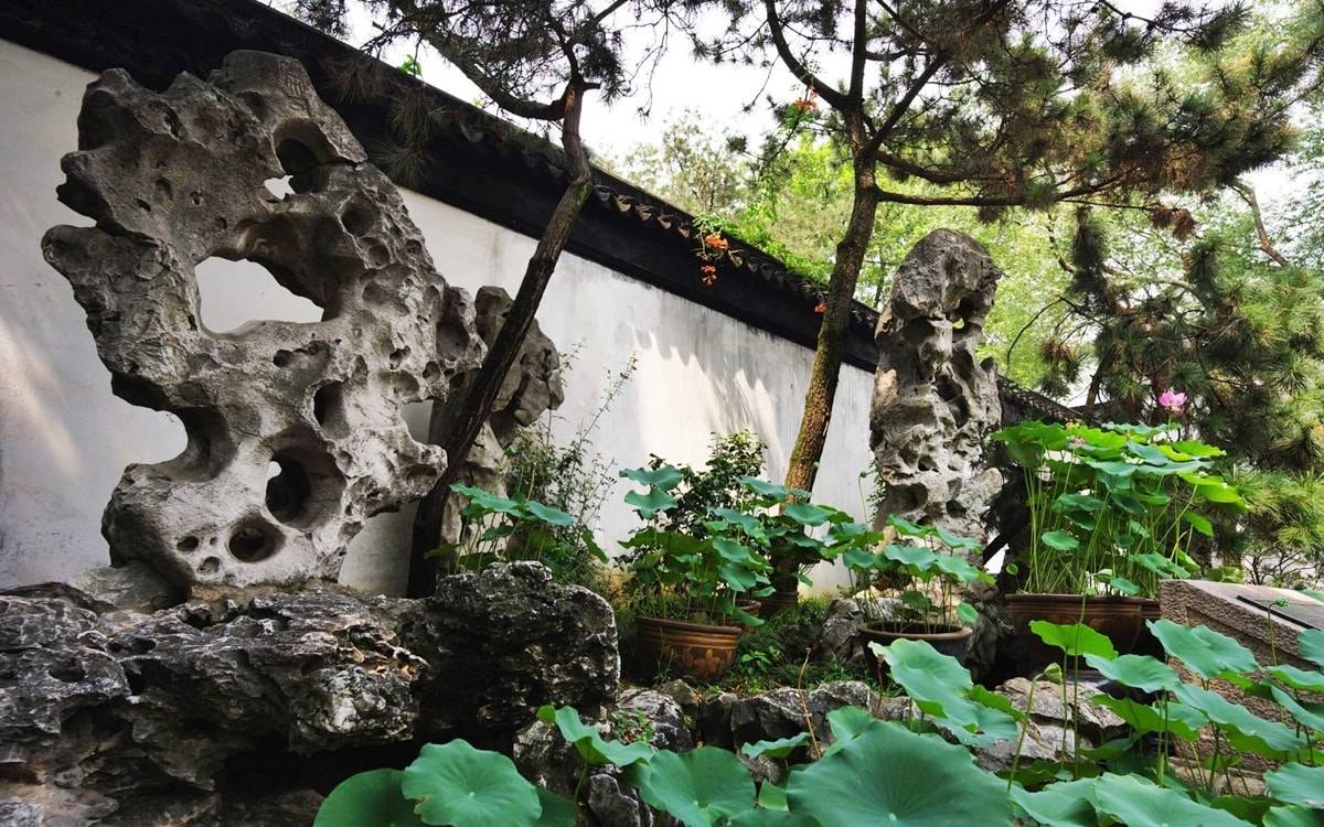 Камни. Наделены душой и олицетворяют собой мужское начало Ян. Особую ценность представляют старые глыбы и образцы, имеющие сложную форму. Располагаются как по отдельности, так и группами. Гора камней в Поднебесной – символ бессмертия. Традиционно в оформлении ландшафта широко используется озёрный известняк, демонстрирующий на своей поверхности следы длительного воздействия воды, а значит – имеющий прошлое.
