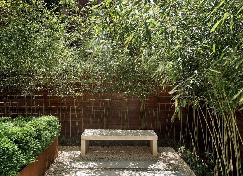 Площадь японского зеленого уголка чаще всего небольшая, но все элементы тщательно продуманы. Фото-пример: