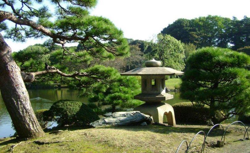 Японский фонарь. Такую конструкцию можно расположить вообще где угодно – хоть у пруда, хоть в растительной композиции. Это каменное сооружение с основанием и крышей, внутри которого устанавливают источник света.
