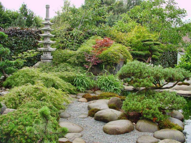 Реже встречаются в садах, но отлично смотрятся квадратные башни из камня, называемые пагодами. На фото можно увидеть, что они состоят из нескольких нечетных ярусов, как и фонари, имеют плоские крышу и основание. Возвышаются над землей на 1-3 м. Вокруг них можно разместить низкорослые кустарники или группы из валунов. Хорошим местом для пагод является берег пруда или открытый участок сада. Иногда люди обустраивают в своих садах целые беседки в виде пагод и пьют там чай.