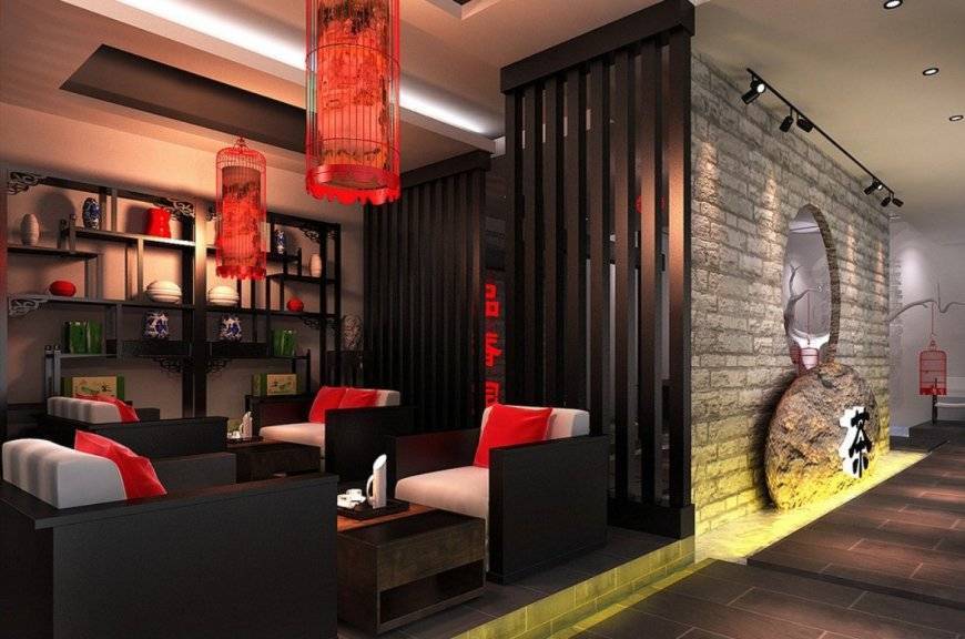 Для оформления интерьеров в сдержанном восточном стиле нужно использовать неяркие природные оттенки. В традиционном японском и китайском направлении присутствует: