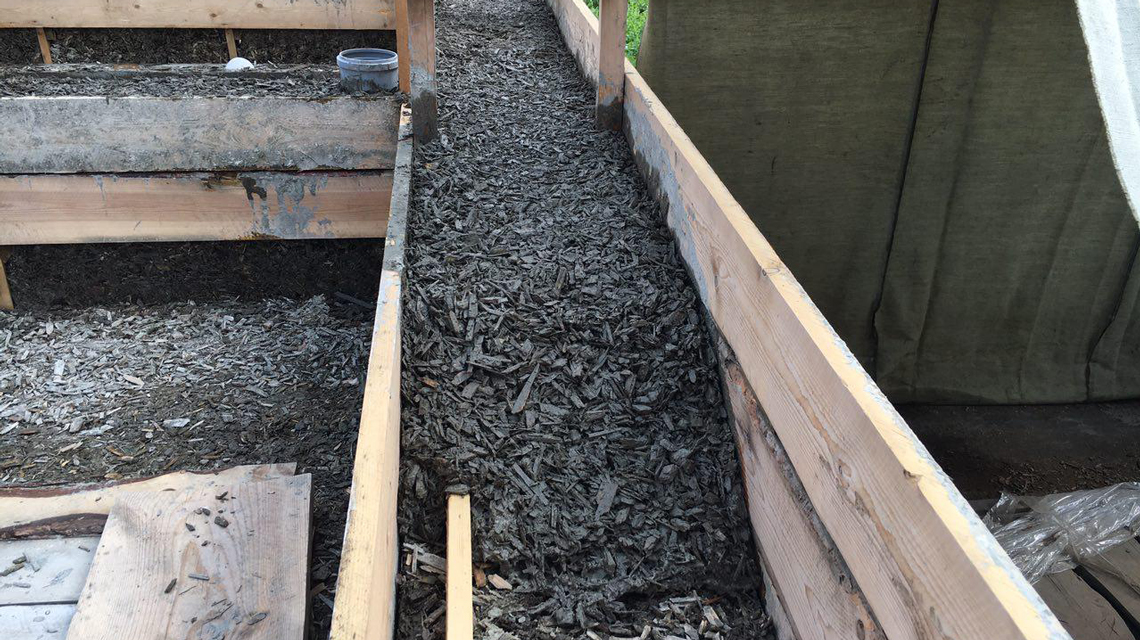 - щепа, заранее замоченная в воде или извести и отжатая – 0.5 м³. Одного мешка извести 40 кг достаточно для замачивания 20-25 тачек щепы
