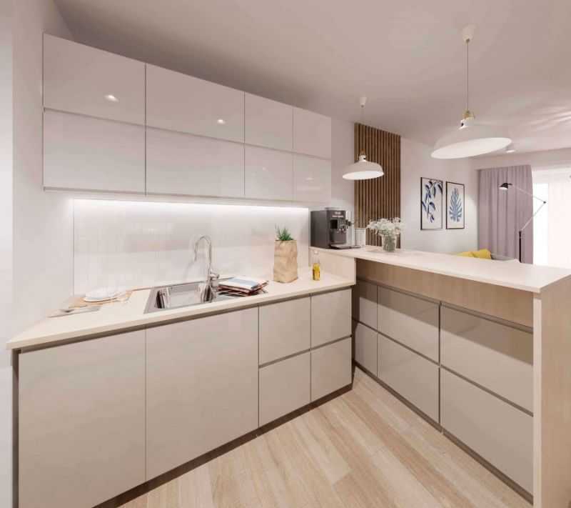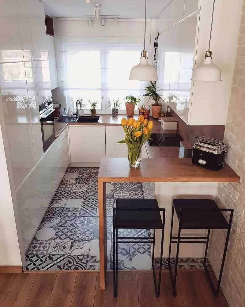 Если есть возможность согласовать перепланировку по присоединению лоджии к площади маленькой кухни, то стоит ей воспользоваться. Так удастся выделить место для обеденной зоны, барной стойки или небольшой зоны отдыха.