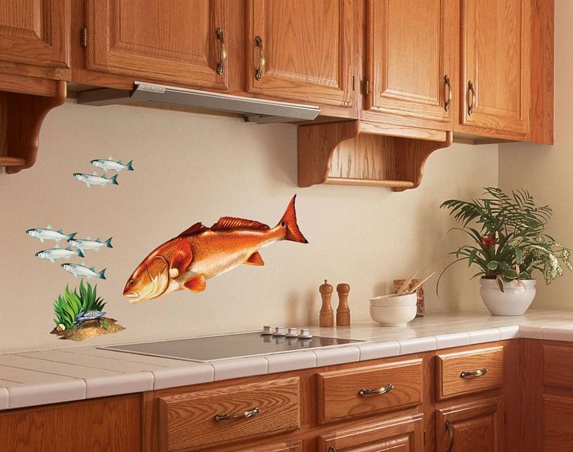 Наклейки в виде рыбок придают всему интерьерному ансамблю оригинальностиИсточник ideas.sawhd.com