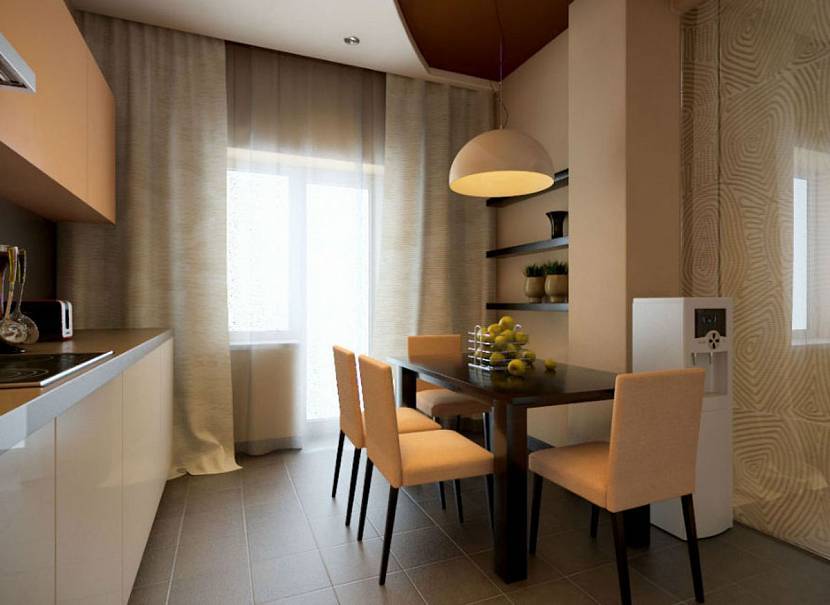 Светлые тона современного интерьера кухни на 12 кв.м.