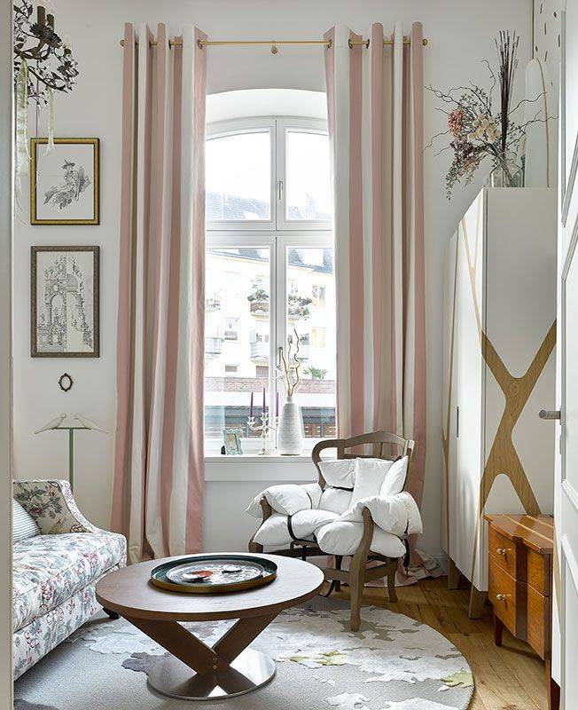 - отказаться от штор (если позволяет концепция дизайна) или отдать предпочтение простым коротким занавескам без пышных и нарядных аксессуаров типа ламбрекена, подхватов, воланов и т.п.