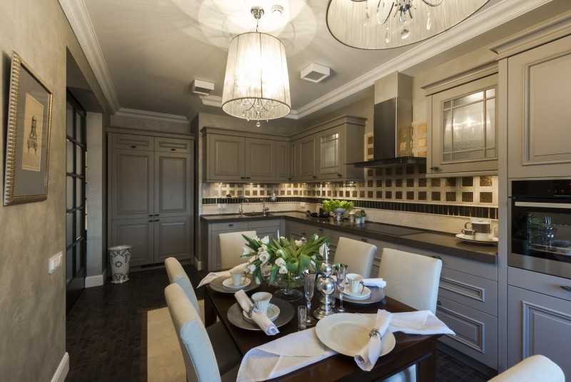 В случае с классическими направлениями серый используют для воспроизведения строгой обстановки традиционного толка. Цвет в сочетании с дорогой отделкой смотрится выигрышно.