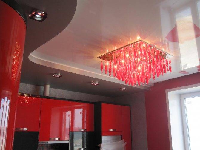 Яркая люстра — она станет незаменимым элементом при обустройстве кухни в стиле артдеко или хай-тек. Если помещение просторное и высокое, стоит подобрать подвесную люстру с яркими стеклянными элементами. Для небольшой кухни следует выбирать припотолочный светильник. Он может быть стеклянным, пластиковым и даже бумажным.
