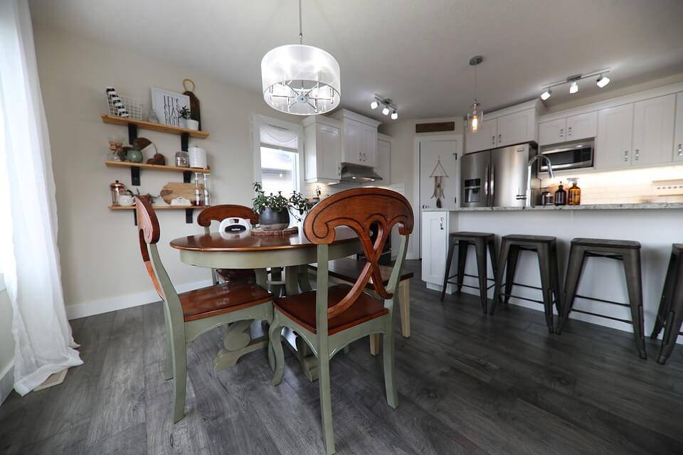 Для обустройства шебби-шика и прованса лучше устанавливать кухонный гарнитур светло-серого цвета, который изготовлен из древесного массива, белый круглый стол со стульями, а стены окрасить в белоснежный цвет. Обязательно при обустройстве интерьера учтите, что лучше не использовать розовый цвет в качестве основного, и такой нежный оттенок должен лишь подчеркнуть свежесть помещения. Гарнитур может быть сделан из самых разных материалов – древесного массива, пластика, ДСП или МДФ. В зависимости от выбранного стиля кухни, можно использовать и матовые, и глянцевые фактуры. Главное, чтобы у вас получилось правильно сочетать оттенки между собой, и тогда обстановка не будет вызывать диссонанс.