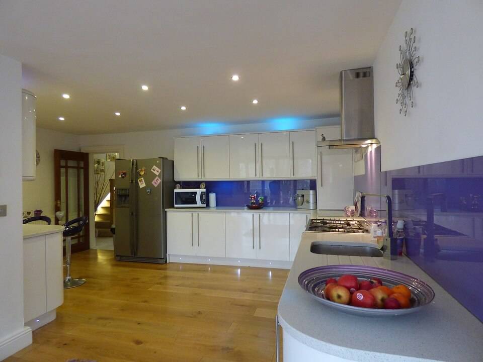 Комната должна быть наполнена светом. Под шкафчиками обязательно нужно продумать освещение в виде точечных светильников.