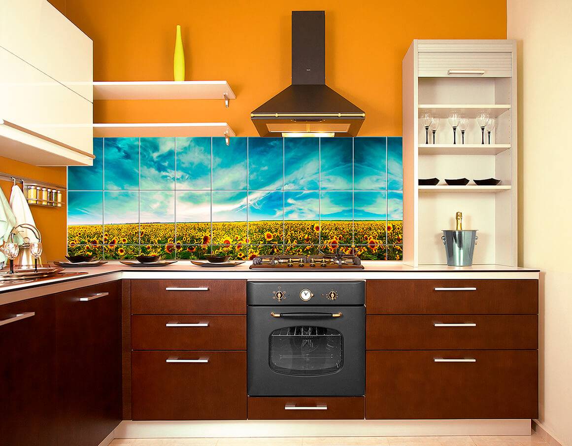 Удачно будет смотреться белая кухня с ярким фартуком.