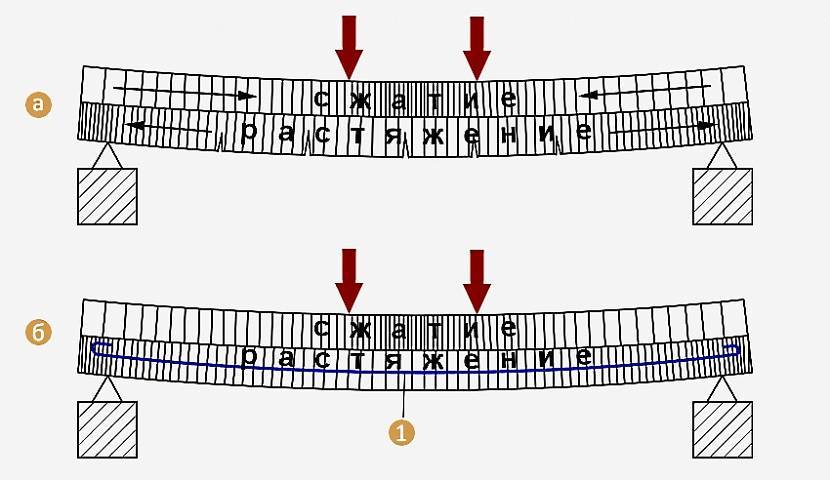 Зачем нужна арматура: сверху просто бетонная балка, а снизу – армированнаяИсточник rmnt.mirtesen.ru