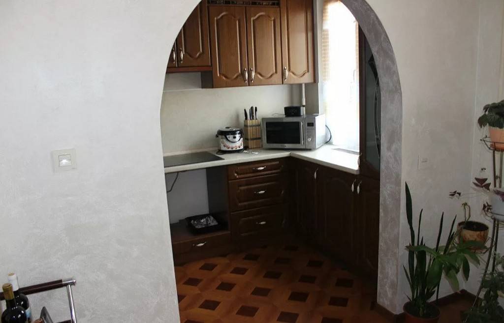 Это, наверное, тот классический вариант арки, который можно чаще всего увидеть между кухней и коридором.